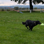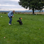 Hier durfte nun wirklich jeder mitmachen der mit dem Hund da war, egal in welchem Training, egal wie alt oder welche Größe. Jeder durfte einfach nur rennen. 30m geradeaus auf Herrchen/Frauchen zu. Zumindest in der ersten Runde.